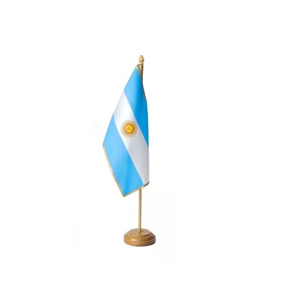 Es una replica de bandera Argentina con mástil de madera para escritorio.-
