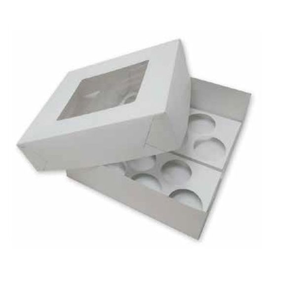 Cajas de cartulina para tortas, con base porta cupcakes y ventana plástica, ideal para exponer el producto.