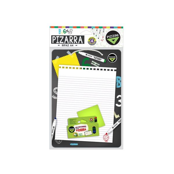 PIZARRA BIFAZ "PIZZINI" A4 C/ MARCADORES LETRAS X UNIDAD