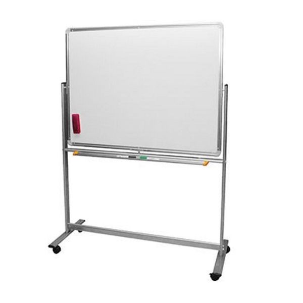 Pizarra blanca para marcador magnética IBI medida 90cm de alto x 120cm de ancho aprox. doble faz con pie x unidad.-