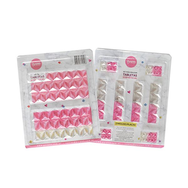 Set de 2 moldes placas, para crear tabletas geométricas en tamaño grande, mini y en barra.