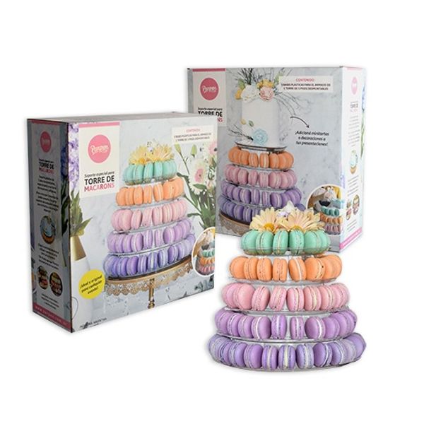 Soporte plástico de 5 pisos desmontables, especial para crear torre de macarons o alfajores.